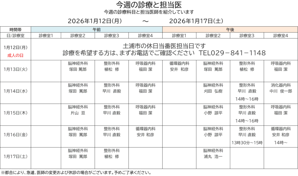 ◇今週の診療と担当医 1月12日~1月17日