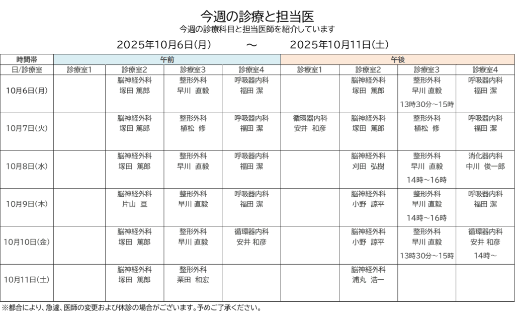 ◇今週の診療と担当医 10月6日~10月11日